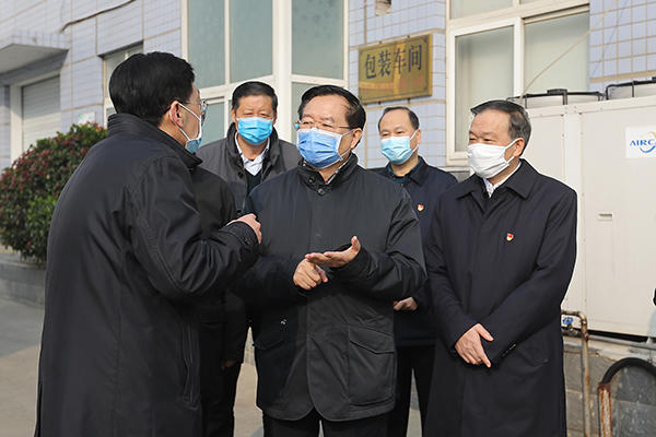 津药瑞达生物科技有限公司和旺能环保能源公司因承担居民生活用品供应、供气供暖和生活垃圾集中处理等民生保障任务,春节期间一直加班加点。王国生仔细查看企业防控措施,现场了解企业运行情况。他叮嘱企业负责同志,要把疫情防控工作放到重要位置,坚决遏制疫情向厂区蔓延,同时扎实做好安全生产工作,严防事故发生。