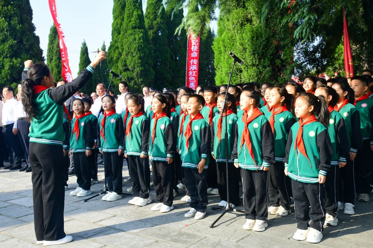 苍松翠柏掩映下的烈士纪念馆庄严肃穆。巍峨耸立的纪念碑上,“革命先烈永垂不朽”8个大字格外醒目。9时许,礼兵仪仗队迈着铿锵有力的步伐,正步行进到烈士纪念碑旁伫立。全场同唱中华人民共和国国歌,激昂的旋律响彻烈士纪念馆。国歌唱毕,全场肃立,向为民族独立、人民解放和国家富强、人民幸福英勇牺牲的烈士默哀。默哀毕,少先队员面向烈士纪念碑,齐声献唱《我们是共产主义接班人》,并致少年先锋队队礼。伴随着深情的《献花曲》,10名礼兵抬起5个花篮,正步走向烈士纪念碑,将花篮摆放在纪念碑基座上。