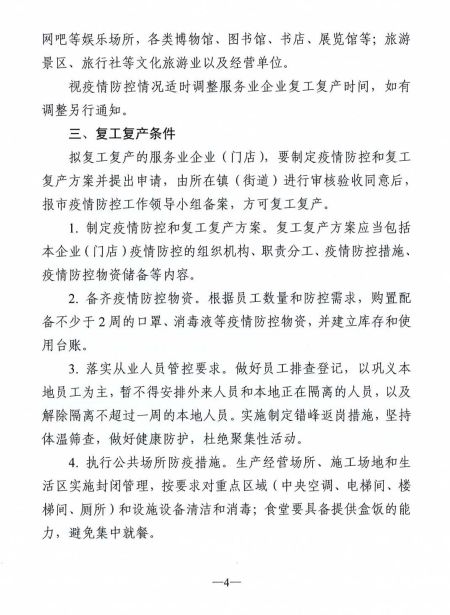 1、以下行业符合条件并经审核批准后的服务业企业(门店)可复工复产