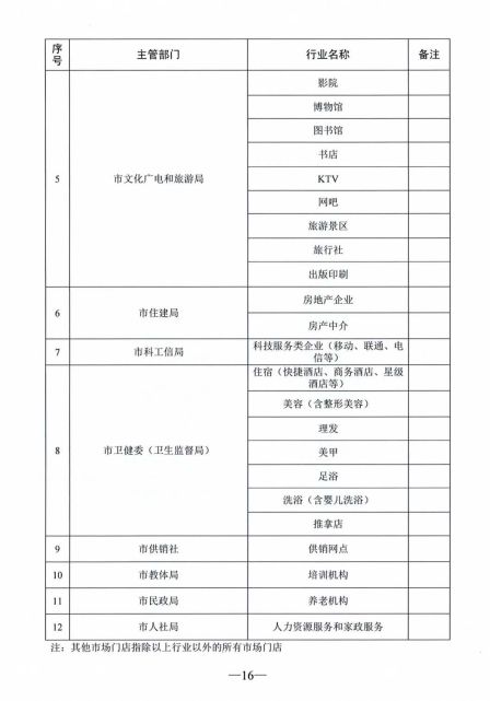 经营性客运行业;批发市场(不含农产品批发市场);家政行业;小型门店;房地产开发企业销售部;影院、剧场、KTV、网吧等娱乐场所,各类博物馆、图书馆、书店、展览馆等;旅游景区、旅行社等文化旅游业以及经营单位。